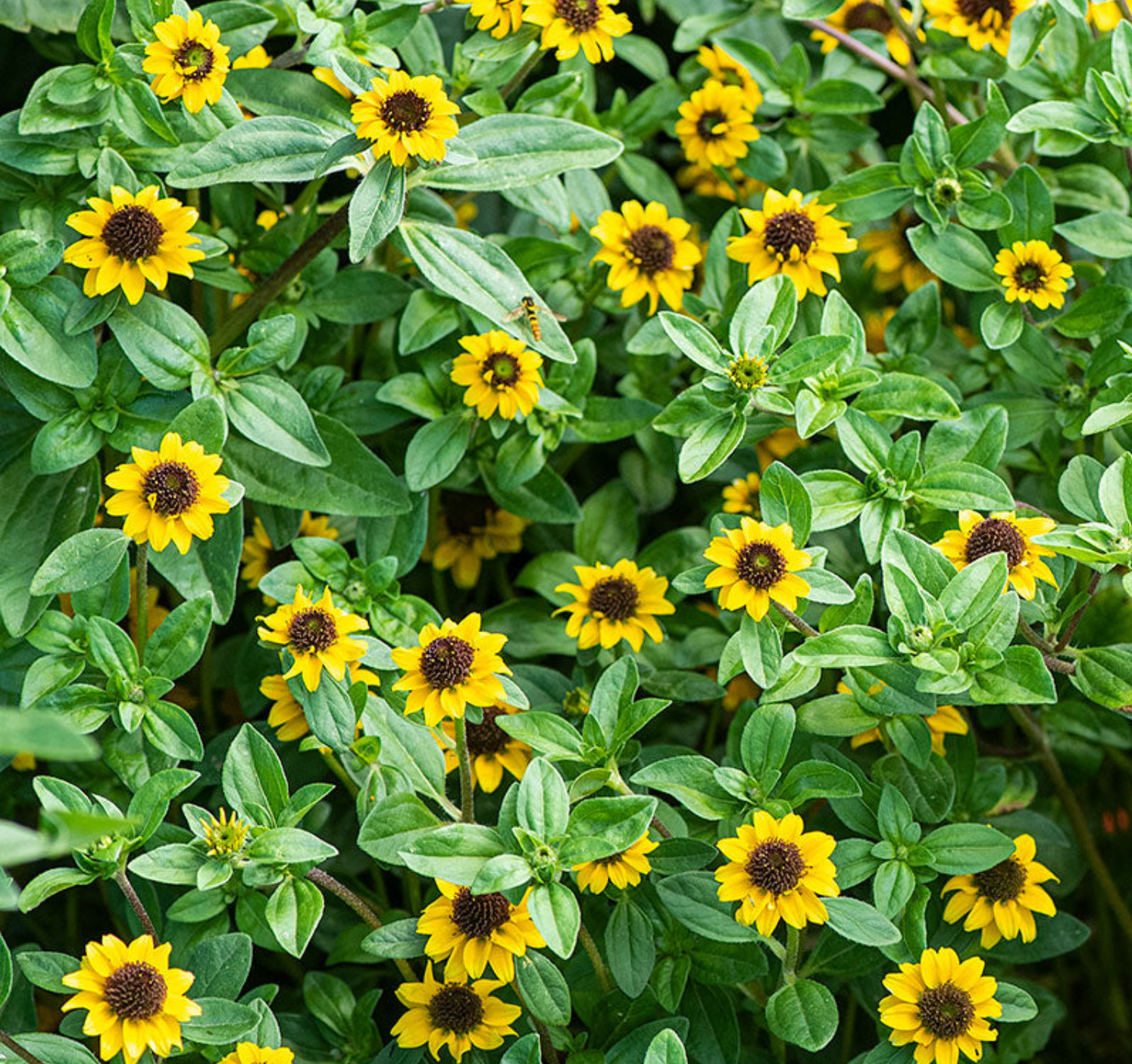Creeping Zinnia is a low growing annual plant that spreads by its stems to form a mat that will grow to a height of 6", and width of up to 18". Also called mini sunflowers.